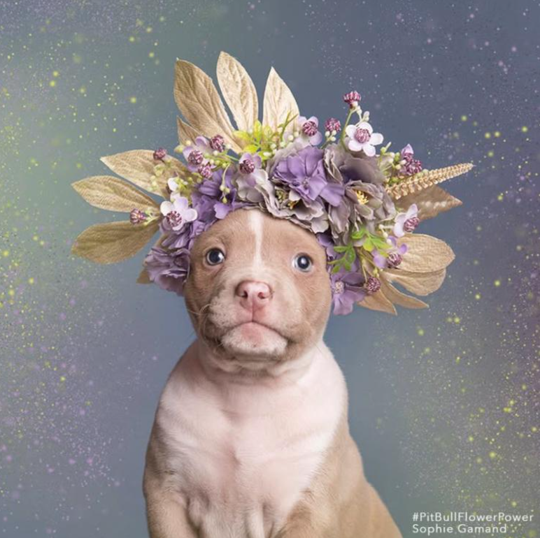 You might know her from the Pit Bull Flower Power project, those stunning portraits of shelter pit bulls wearing flower crowns. 🌸